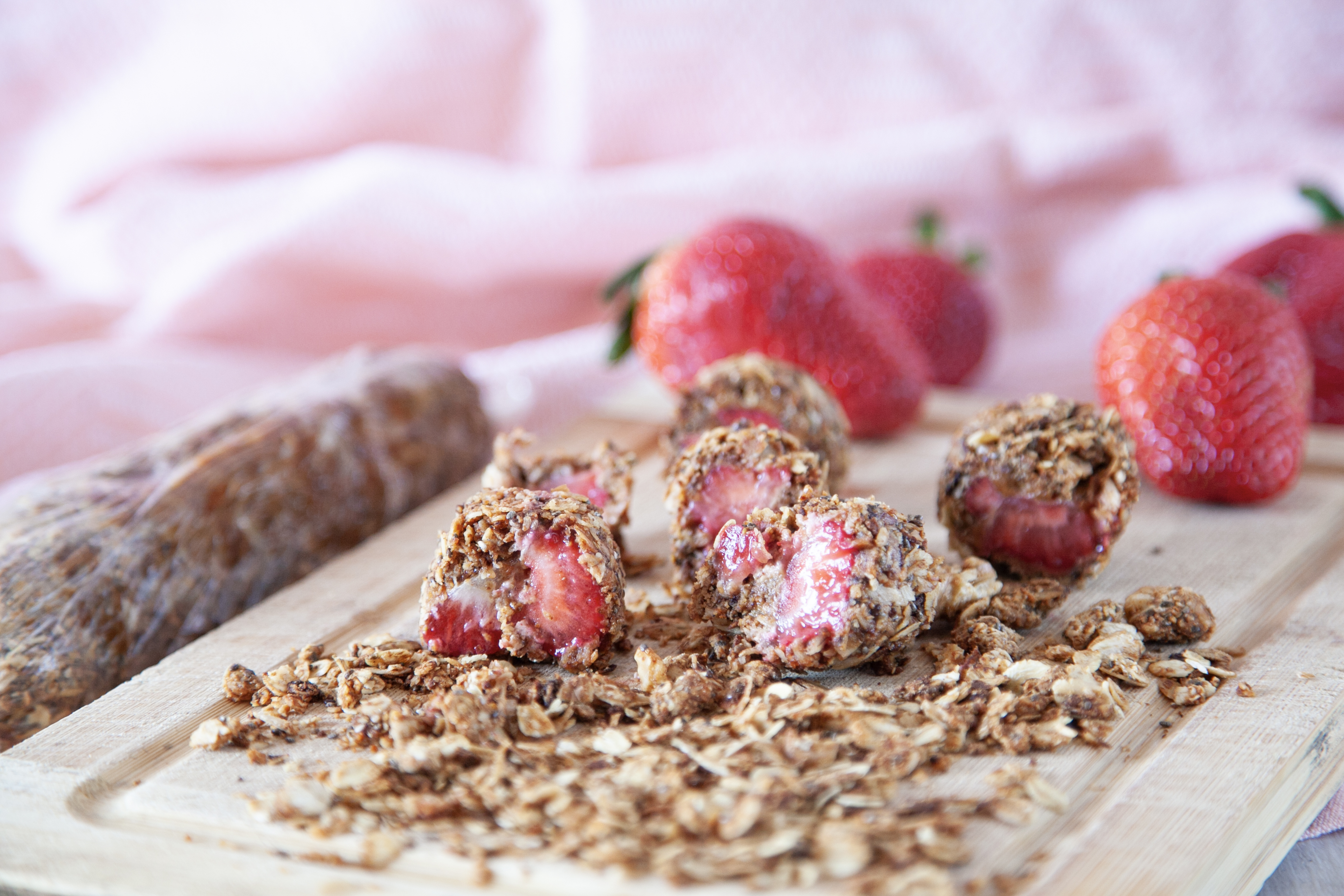 Zkuste si zpestřit ráno nebo svačinku a udělejte si granolové sushi s banánem nebo jahodami.